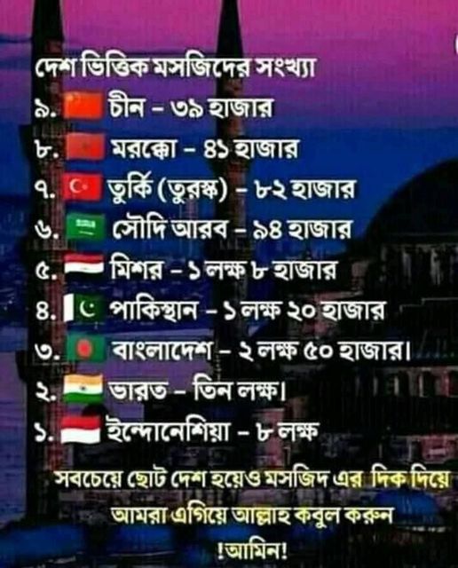 ইসলাম প্রিয় মানুষগুলো যুগ যুগ ধরে মসজিদ তৈরী করে আসছেন এবং কোথাও কোথাও সুন্দরের প্রতিযোগিতায় লিপ্ত হন , আলহামদুলিল্লাহ ।