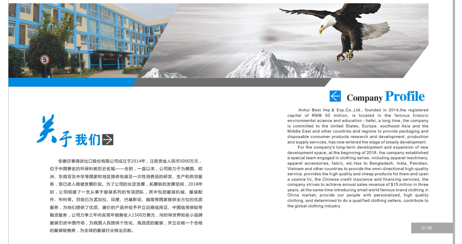 安徽百事得进出口股份有限公司 Anhui Best Imp. & Exp. Co., Ltd. Started in 2014. An established company with manufacturing units for mostly various kinds of food packaging products with modern technology and also have foreign trade units with investment against the export-oriented products.